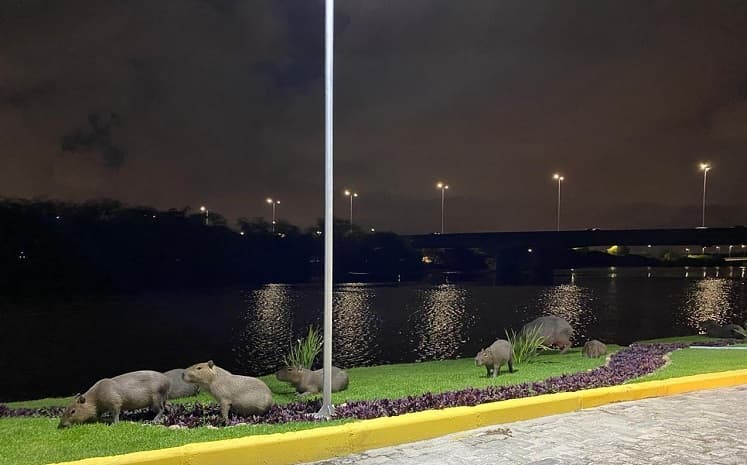 Vejam só como nós, humanos, tomamos o lugar dos animais na natureza. Cada vez mais raras no Recife, por conta da nossa selva de concreto,, da destruição de nossas matas e da poluição dos nossos rios, as capivaras passaram a aparecer com frequência maior, nesse período do nosso isolamento social, determinado pela pandemia. Nos dias normais até que davam o ar da graça, mas raramente. Às vezes eram vistas de madrugada perto da Ilha do Retiro por remadores, também observadas em bairros mais tranquilos, como Apipucos e Poço da Panela. Capivara gosta de morar perto de rios, lagos, açudes. Adora água.