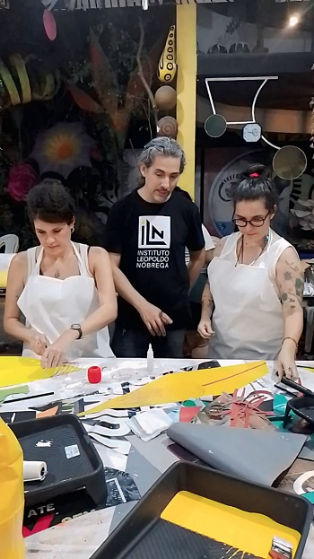A escultura do Galo é confeccionada pelo Atelier Escola Arte Plenna em parceria com o Instituto Leopoldo Nóbrega, que juntos promoveram convocatória e seletivas para capacitação de produtores e artesãos de Pernambuco.
