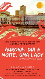Uma das mais icônicas – a começar pelo poético nome – e importantes ruas do Recife vira motivo de exposição. Aurora, Dia e Noite, uma Lady é o nome da mostra de fotografias, assinadas por Marcus Vinicius Souza, que fica em cartaz entre os dias 23 de novembro e 21 de dezembro no Lady Aurora Restaurante, localizado na esquina da Rua Capitão Lima com a Aurora, no Bairro de Santo Amaro.