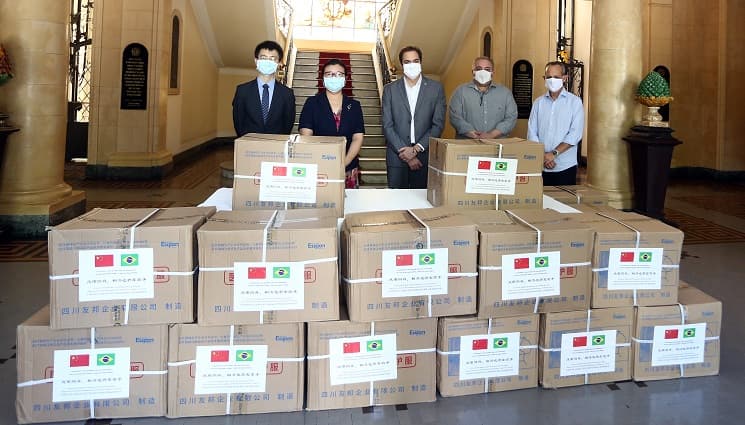 Depois do Recife, chegou a vez do Estado receber doação de equipamentos da China, para enfrentar a pandemia da Covid-19. Na manhã dessa sexta-feira, o Governador Paulo Câmara (PSB) recebeu Equipamentos de Proteção Individual (EPI) da Província Popular de Sichuan, localizada naquele país asiático. A doação foi entregue pela Cônsul geral da China no Recife, Yan Yuqing. E inclui 10 mil máscaras cirúrgicas, 1,2 mil máscaras N95 e 200 macacões de proteção.