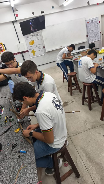 Na produção desses primeiros equipamentos, a GRE Mata Centro ofereceu recursos financeiros para a compra dos insumos necessários, além de realizar a articulação com os estudantes da Rede Pública com demanda. O projeto contou ainda com parceria do setor privado de Bezerros, por meio do Instituto Moura de Educação e Tecnologia (Imet) e Apec Segurança. Estão a escola, gestores, professor e alunos, todos de parabéns.