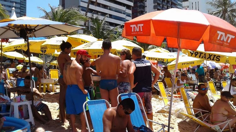 Às vezes, às seis da manhã já tem som a todo volume no calçadão. Na areia, a mesma prática, só que um pouco mais tarde, depois que os ambulantes se espalham. São muitos os barraqueiros que instalam suas caixas de som e colocam um volume tão alto que, se elas atraem alguns, afastam muitos outros. Punição que é bom…. neca. E depois que inventaram o bluetooth, a coisa piorou. Porque todo banhista se acha no direito e amplificar o som do telefone celular e ligar aquele sonzão. E o vizinho de barraca que aguente batidão, funk, sertanejo, brega…