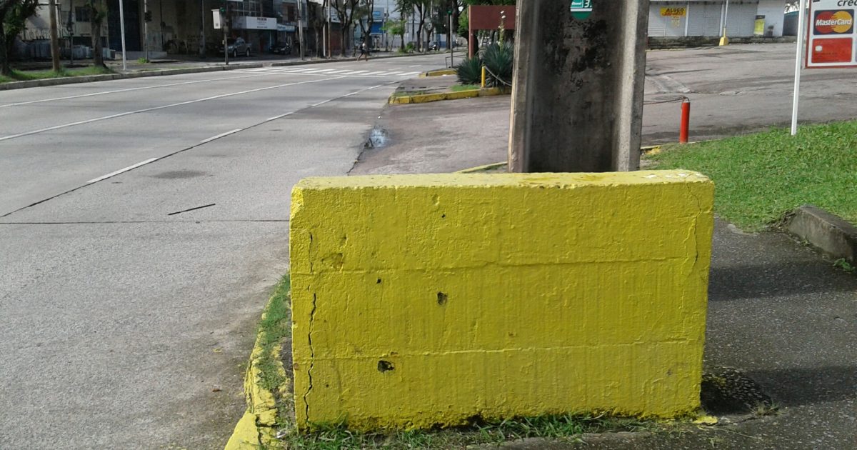 Tenho visto esse problema com muita frequência, nas calçadas do Recife. Como se não bastassem os buracos, os desnivelamentos, as pedras soltas, a gente ainda encontra os famigerados gelos baianos protegendo sabem quem? Os postes. Se esses monstros amarelos já embrutecem a paisagem do Recife no meio de ruas e avenidas, imaginem só sobre os espaços que deveriam ser os meus, os seus, os nossos e de todos aqueles que os utilizam para se locomover.