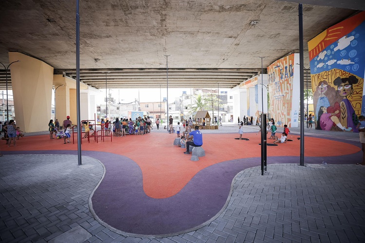 A mais nova intervenção de arte urbana do Recife fica em local antes ocioso, invisível e degradado da cidade: a Vila do Papel, sob o Viaduto Capitão Temudo, onde foi recentemente implantado o primeiro Comvida da cidade, uma nova experiência de urbanismo social na capital pernambucaa.