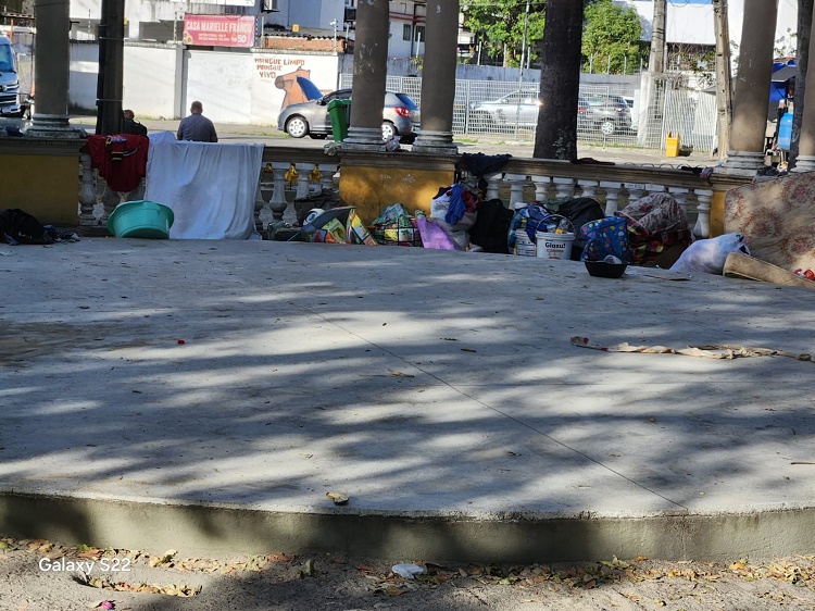 São cenas deprimentes mesmo. Primeiro, diante da explosão explícita da pobreza, segundo pela ocupação do espaço público, terceiro porque o problema aumenta a cada dia que passa. Para completar, as raízes das árvores ficam bem próximas aos “fogões” improvisados, e a gente sabe que o fogo pode prejudicar o já tão decantado patrimônio verde dos nossos espaços públicos. Se qualquer praça tem que ser protegida, as que são tombadas teriam que ter proteção maior ainda. E, com certeza, esse não é o caso da Praça do Derby. O nome do retrato que lá se vê é um só: abandono. E total.
