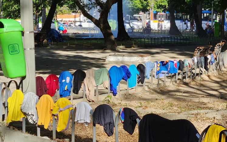 São treze jardins históricos, sendo seis tombados pelo IPHAN, todos com a assinatura daquele jovem arquiteto que seria depois um dos mais importantes paisagistas do mundo. Justamente pela importância que têm e principalmente por serem tombadas, deveriam ser tratadas com carinho. Em outras palavras, preservadas. E as pessoas que estão dormindo ao relento precisam, também, de abrigo, pousada, comida, treinamento para geração de renda. No Derby, as grades se transformaram em varais para estender trapos das famílias que ali residem. O gramado, totalmente castigado pelo sol e aparentemente sem aguação, está tomado de tralhas. E o lixo se espalha por todo canto, até boiando no chamado Laguinho do Amor. “Voltando há pouco do Cinema da Fundação (Fundaj), e me deparei com essas cenas deprimentes, na Praça do Derby”, lamenta a leitora. Sim. Sofia tem razão.
