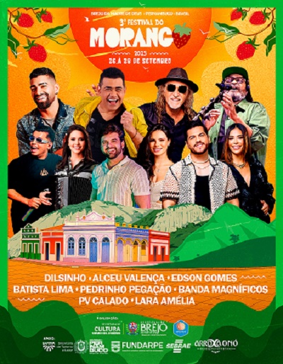 O Brejo é considerado o maior produtor de morangos de Pernambuco (o outro é Gravatá). É aquele município onde fica o vilarejo de Fazenda Nova, que durante a Semana Santa atrai milhares de turistas para assistir ao “Drama da Paixão”. Muitos deles chegam na hora do espetáculo e se mandam após a apresentação. Não sabem o que estão perdendo, pois o centro do município tem bonitas paisagens e um antigo casario. O Festival é uma boa oportunidade para conhecer melhor a cidade. A programação, conta com feira gastronômica e de artesanato, shows (incluindo Alceu Valença), e apresentações de grupos folclóricos (como a Banda de Pífanos São José e Batalhão de Bacamarteiros). Nosso grande Alceu se apresenta às 22h30m do sábado (27/9). O setor de gastronomia vai contar com aulas-show com uso de receitas à base da fruta. Dá água na boca, não dá?…