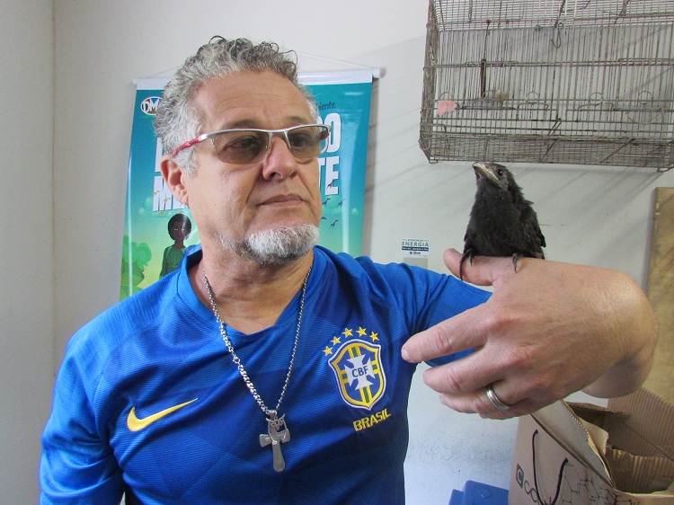 Aí, indaguei: “O senhor trabalha na Cprh?” Ele respondeu: “Não. É que caiu um passarinho no meu jardim, tentei alimentá-lo, mas ele travou o bico e estou levando à Cprh para ele mão morrer”, respondeu o homem. Seu nome: Marcos Ferreira de Lima, residente no bairro da Macaxeira, Zona Norte do Recife. Ele foi caminhando até a Agência Estadual do Meio Ambiente (Crph), para entrega voluntária do bichinho, que caíra de um ninho. “É novinho, mas é brabo”, me disse ele.