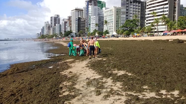 Cheguei em Boa Viagem no sábado, pouco depois das sete horas, com a maré ainda baixa. À distância, só vi sargaço. Mas depois, era lixo que não acabava mais. Um gari da Emlurb, Severino (não perguntei o sobrenome) me informou que na sexta a situação era ainda pior. “Só entre esses dois quiosques, enchi de lixo dez sacos de cem litros”, comentou, apontando para duas barracas no calçadão, nas proximidades do Edifício Portugal. Entre um quiosque e outro, não sei a distância, mas contei cem passos. Ou seja, uma tonelada de lixo a cada 500 metros. De qualquer forma, ajudei Severino a recolher o lixo, e pedi a ele desculpas em nome da nossa tão mal educada população. No mar, na areia, era todo mundo com um saco, recolhendo o que via. “Isso é uma vergonha para o Brasil”, dizia o ambulante Siwu Mota, que trabalha em uma barraca perto do Edifício Holiday. Em dez minutos, ele já havia enchido um saco e ia levar para a lixeira, no calçadão. “Vou carregar no ombro”, afirmava orgulhoso de sua ação cidadã.