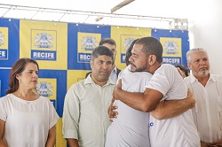 Já o abrigo funciona de 19h às sete da manhã. Tem capacidade para cem pessoas, entre homens e mulheres. Oferece banho, camas com roupas limpas, kits para higiene pessoal, espaço para guarda de pertences e atendimento psicossocial. “Quinze pessoas de rua que passaram pelo acolhimento ganharam oportunidades de emprego aqui”, diz Ana Suassuna, Secretária de Desenvolvimento Social, Juventude, Política sobre Drogas e Direitos Humanos. Ex morador de rua, José Nilson,38 (foto maior e à direita abraçando o prefeito) comemorava: “Ganhei um presente de Natal com esse emprego”.