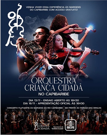 “Cada vez mais estamos trabalhando o lazer náutico como uma experiência diferenciada para o turista e para o recifense e é um programa que veio para ficar”, explicou. O programa do concerto não foi divulgado. Antes disso, nesse sábado (8/11), a Orquestra Sinfônica Infantojuvenil Criança Cidadã realizará um concerto especial na Igreja Batista Emanuel, em Boa Viagem, zona sul do Recife. A entrada é gratuita e aberta a todos os públicos. A apresentação terá início às 18h. O concerto será conduzido pelo maestro Jadson Dias, que comandará a orquestra em um repertório diversificado, incluindo obras de Johann Sebastian Bach, Arcangelo Corelli, Luiz Gonzaga, Diogo Bazante, Georges Bizet e Arturo Márquez. O solista da noite será o oboé Estevão Douglas Felizardo. A OCC é um projeto social, que teve início no Coque.
