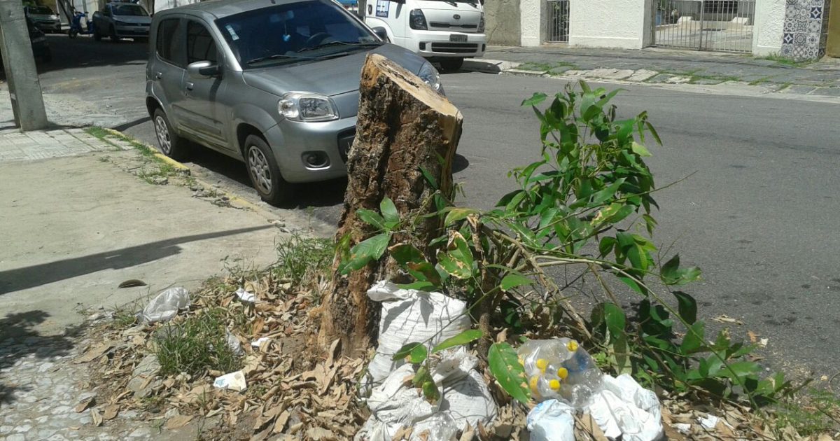 Ela foi degolada logo depois do carnaval. Como sempre ocorre com as árvores assassinadas do Recife, o canteiro que virou cova foi transformado em depósito de lixo, o que contribui para que a cidade fique ainda mais brutal. Ou seja, menos humanizada. Um pouco depois, já próximo à Igreja da Harmonia, sou eu que me deparo com outro toco, dessa vez na Estrada do Arraial, próximo à esquina da Rua Olímpio Tavares, também em Casa Amarela, Zona Norte do Recife. Ou seja, as baixas de árvores, só nesse post, somam duas. São 173 vítimas de arboricídio computadas só aqui no #OxeRecife, entre 2017 e 2018.