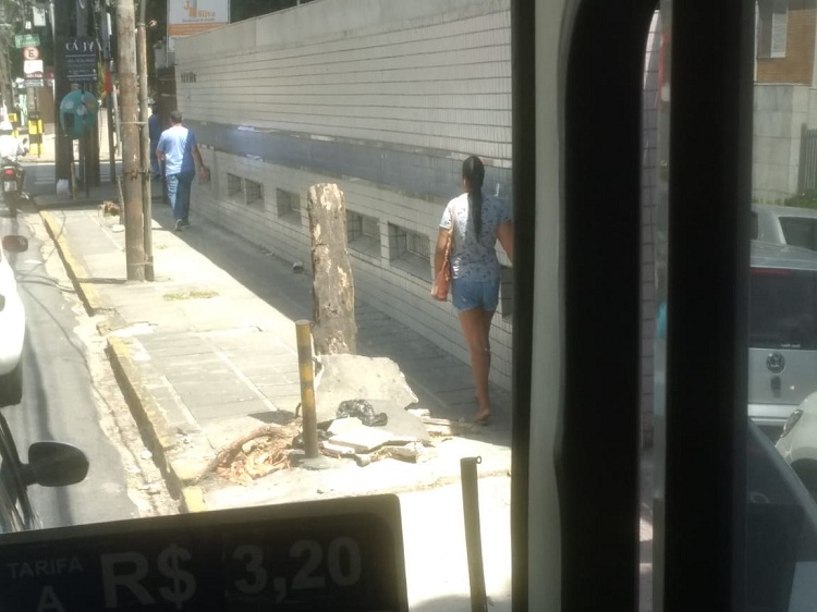 Sofia enviou para o #OxeRecife o registro desse tamborete aí, que fica “bem pertinho da esquina da Rua Conselheiro Portela”. Passei no domingo no local, e o toco permanece lá. Do mesmo jeito, mas preferi preservar a foto da leitora. Do jeito que ficou, desconfio que a árvore mutilada (da qual só restou mesmo um pedaço do caule) não tem como voltar a brotar.
