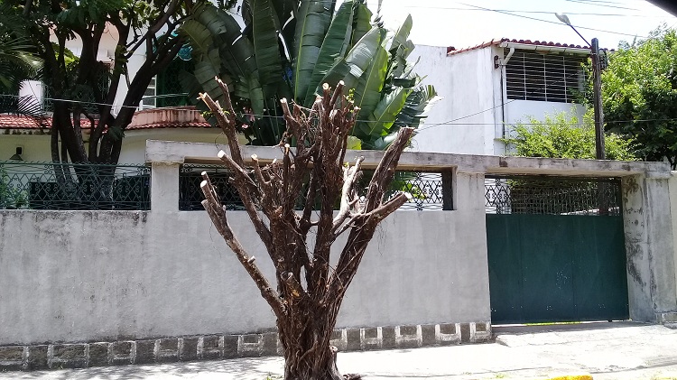 Mais uma. Será que essa árvore sobrevive com essa “poda”. No meu humilde entender, isso não pode ser chamado de poda, mas sim de mutilação. Nas minhas caminhadas matinais, passando sempre pelos mesmos lugares, tenho visto muitos casos semelhantes.