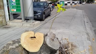O registro da vítima anterior inclusive foi feito no dia 8 de outubro daquele ano no #OxeRecife (Parem de derrubar árvores 56). O corte de 2017 aconteceu na calçada do Edifício Alameda 17 onde, felizmente, uma muda foi plantada pelo condomínio e encontra-se saudável e em crescimento. Pertinho dali, no entanto, outra árvore decepada tenta sobreviver à degola (ao lado).