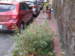 Ela fica em uma calçada sobre a qual não há fiação aérea e, portanto, a desculpa frequente de que estava com os galhos enganchando nos fios da rua não cola. Como a árvore fica em área pública, cabe à Prefeitura a responsabilidade por manutenção, poda, erradicação se for o caso. E, depois, reposição. Bem pertinho dela, há um alegrete vazio e vejam o que aconteceu: o mato comeu todo o espaço. E pelo que se observa, nenhum serviço de capinação.