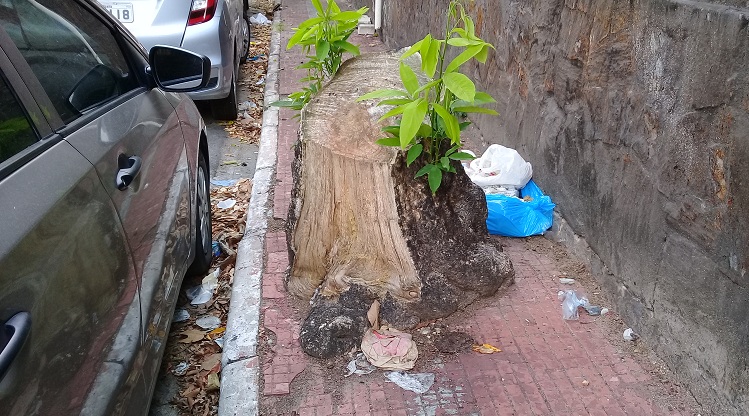 Quando não é isso, é lixo mesmo que sobra, porque quando uma árvore é retirada e o canteiro fica vazio, geralmente passa a ser usado como depósito de detritos pela população. O que é muito triste. Sinceramente, não conheço nenhuma outra cidade onde seja tão grande o número de árvores degoladas em espaços públicos. Alguém sabe o motivo dessa matança deliberada?