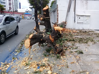 O descalabro não vai mesmo ter fim. Por onde se anda, nesta cidade, tem uma árvore guilhotinada ou morta, sem que tenha havido a devida reposição. No último domingo, ao ir à praia de Boa Viagem, encontrei mais duas mortas. Uma foi guilhotinada, como é comum no Recife do arboricídio. A outra, ou mataram, ou deixaram morrer. Ou morreu naturalmente. O problema é que não há sinal de reposição nem em um local nem no outro. Está lá, a árvore parecendo um graveto na calçada.