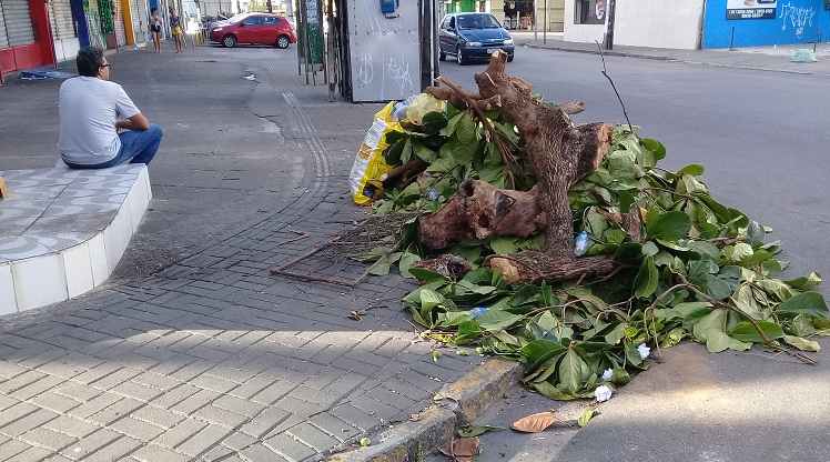 Não tem jeito não. É a gente apontar uma boa ação, mas logo aparece outra para se lamentar no Recife do arboricídio. Realmente é uma tristeza, o que se vê em cada esquina da cidade. Por onde se anda, uma árvore guilhotinada, mutilada ou assassinada. Esta encontrei na manhã do domingo, quando passei pelo bairro de Casa Amarela, Zona Norte do Recife. Os restos mortais estavam na esquina da Rua Padre Lemos com a Senador Soares Meireles.