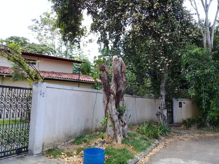 Mas mesmo caminhando por perto de onde moro, sempre encontro novas árvores degoladas. Digo, vítimas de arboricídio, da motosserra insana. A da foto acima foi vista à Rua Anauro Dornelas Câmara, em um terreno que fica à margem do Açude de Apipucos, já vizinho ao bairro da Macaxeira. A outra, de corte mais recente, fica na Rua Nazaré de Minas, situada também em Apipucos, por trás do Açude. Nas duas áreas ainda resta algum verde. São resquícios da nossa Mata Atlântica, infelizmente quase toda destruída nos dois bairros.