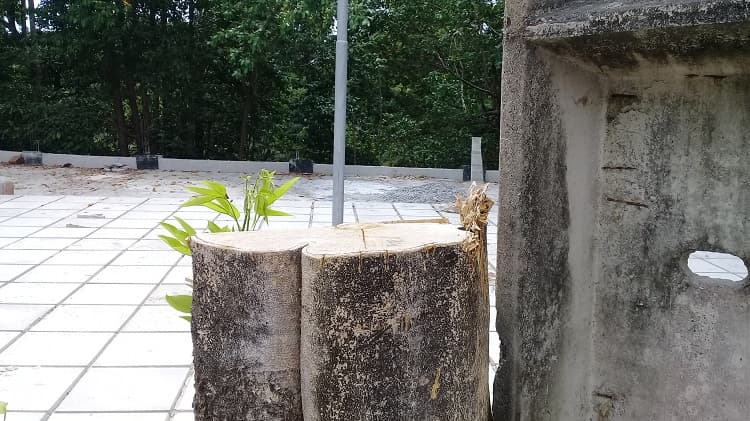 Esse flagrante da árvore da foto central feito em janeiro de 2020. A árvore foi degolada para a implantação de um centro de convivência à margem do Rio Capibaribe, iniciativa da Prefeitura. Até hoje, o tronco guilhotinado permanece no mesmo local. A planta, que era frondosa, foi guilhotinada para ceder lugar ao concreto, quando a área deveria sim, ser verde. O solo foi coberto com cimento, como parece ser de cimento a cabeça dos nossos gestores.