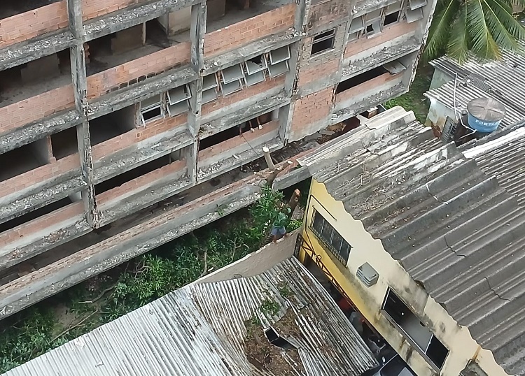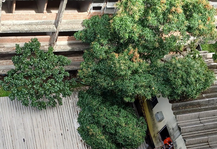 “Anatomia de uma morte anunciada. Houve um caso de tentativa de latrocínio na Rua da União, e os bandidos entraram pelo telhado subindo por essa mangueira. Como a culpa foi da mangueira, olha o que aconteceu nessa semana”, ironiza o arquiteto Alexandre Ramos, que mora em prédio próximo ao local e é um apaixonado pelo verde e defensor das árvores da cidade. “A mangueira fica no terreno do lado (do imóvel invadido), que tem um prédio em ruínas e que está ameaçado de cair”, conta ele, referindo-se a um edifício que começou a ser erguido nos anos 1960, e que nunca foi concluído. E que está ameaçado de desabar, mas cuja demolição enfrenta batalha judicial. Até o momento nada pôde ser feito para evitar um desastre maior. Antiga, a mangueira ficava no terreno da construção inacabada. No início do mês, o marginal entrou no prédio, escalou a mangueira e entrou no telhado de um imóvel, onde agrediu Emerson Gadelha Freitas, proprietário do terreno, onde antes funcionava um estacionamento. Ele estava no escritório, onde passara a noite. Com o risco de queda do prédio vizinho, o estacionamento está interditado. Ou seja, o balança mas não cai está de pé. Mas a mangueira… esta já era. Infelizmente. A gente só tem mesmo a lamentar.