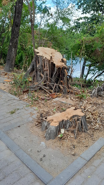 Na última vez que caminhei ao longo da Rua Jornalista Jorge Gomes de Sá e prolonguei o passo até a Rua Jair Furtado Meireles – perto da UPA Padre Edwaldo Gomes – encontrei muito depósito de lixo na beira do Capibaribe. Algo de fazer doer o coração. E também alguns toquinhos ao longo do caminho. Mas esses dois daí da foto não são toquinhos, mas tocões. E ninguém sabe a razão da degola operada como sempre pela motosserra insana. Lembrem-se: essas duas árvores ficavam em área que é considerada pública e, portanto, sob gestão dos órgãos oficiais. Mas parece que esses existem é para operar degolas mesmo, supressões, arboricídios. Como se não estivéssemos em um Recife da emergência climática. Detalhe: Não há fiação aérea nessa área, e também não é de grande trânsito de pessoas. Portanto, ninguém sabe qual foi o motivo das derrubadas. E a gente não vê indícios na altura do corte da praga de cupins, por exemplo. Como se observa na foto, não há nenhum orifício nos troncos indicando que eles estava ocos por dentro. Sei não… Enquanto há países que fazem transplante de árvores adultas em caso de necessidade de remoção para ceder espaço para implantação de obras públicas, aqui se mata por nada mesmo.