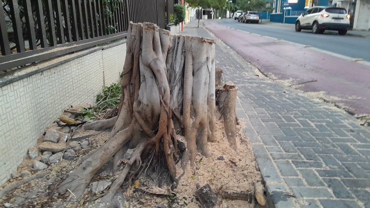 Parem de derrubar árvores (422). Menos uma na Av Rui Barbosa no bairro das Graças