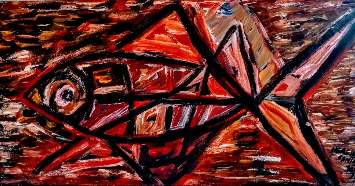 E segue até às artes plásticas. “Em razão disso, não há nada errado em palavras ou elementos visuais ganharem novos sentidos”. Que outros animais acumulam tanto simbolismo? Agora, doze artistas se unem, em mostra, para “revelar ao público, amante das artes e do sabor algumas das faces da palavra Peixe”. Os peixes expostos possuem assinaturas de Hercílio Santos (foto), Bozó Bacamarte, Vânia Cutinho, Feliciano dos Prazeres, Mané Tatu, Então, Jessica Martins, entre outros. Jogue fora sua ansiedade, fique peixe, e caia no clima da mostra Peixe no Bar. Vamos lá?