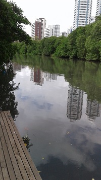 Lindo, sinuoso, cantado em prosa e verso, e com bairros por ele banhados utilizados no passado como estações de veraneio, o Rio Capibaribe está podre. Infelizmente. Quem mora na Zona Norte do Recife tem reclamado da cor escura de suas águas e do insuportável odor que tem invadido suas margens. Nos séculos 19 e início do 20, bairros ribeirinhos como Poço da Panela e Várzea eram utilizados como “praias” no verão por famílias abastadas, que curtiam suas águas transparentes. Havia prática até de banhos noturnos. Limpinho mesmo como antigamente, há muito tempo ele não mais está. Porém ninguém se lembra há quantos anos não era observado assim, tão poluído com toda essa intensidade. Estive três vezes esta semana no Jardim do Baobá, durante minha caminhada matinal. E fiquei impressionada com o que vi.