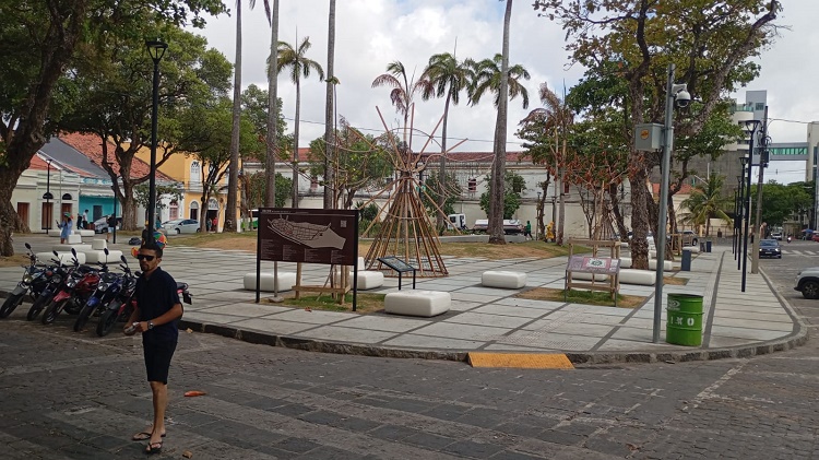 Em outubro do ano passado, a Prefeitura do Recife fez a entrega da requalificação da Praça Artur Oscar, obra que exigiu R$ 1,8 milhão em investimento. A Praça é um dos espaços mais emblemáticos da cidade e também um dos mais visitados, por ficar nas proximidades da Rua do Bom Jesus e do Marco Zero, dois recantos de grande demanda turística, na parte antiga da capital pernambucana. Pois os equipamentos, que foram lá colocados no ano passado, já estão sendo furtados.