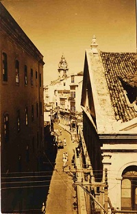 Pouco antes da pandemia, estive em um passeio a pé pela Camboa do Carmo com o Grupo Caminhadas Domingueiras. E fiquei impressionada com os novelos de fios, com a poluição visual nas lojas e sobretudo com a sua aridez. É verdade que a via, estreita, nunca foi um primor de arborização, nem mesmo no início do século passado, como vocês podem observar na foto ao lado, do acervo da Fundação Joaquim Nabuco. Naquela época, o Recife ainda não tinha se transformado em uma selva de concreto e ninguém nem falava em ilhas de calor. Como vocês podem reparar na foto maior, a via que hoje é só para pedestres até que sofreu reparos. E as pedras portuguesas estão arrumadinhas, sem os famigerados remendos de cimento verificados em outras áreas do centro, que possuem revestimento similar. O problema, no entanto, é aquele que no Recife há de sobra. Falta humanização, falta verde.