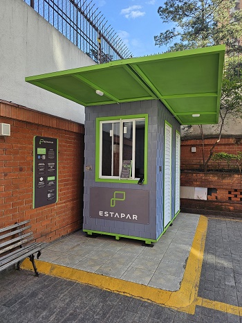 Elas começam a dar novo destino aos plásticos e demais materiais não biodegradáveis. Com a providência, a empresa afirma evitar a emissão de 690 quilos de CO₂, caso tivesse que construir sua guarita por métodos convencionais. A iniciativa se inicia como piloto, mas marca a entrada da Estapar “ em projetos de infraestrutura com foco em sustentabilidade urbana e economia circular”, que tem como “meta o crescimento significativo na rede da Estapar nos próximos anos, reforçando o compromisso da empresa com a responsabilidade ambiental e inovação”. Cada guarita utiliza 690 blocos confeccionados com materiais reciclados. Além de benefícios ambientais, a guarita é resistente, leve, de rápida instalação e baixa manutenção.