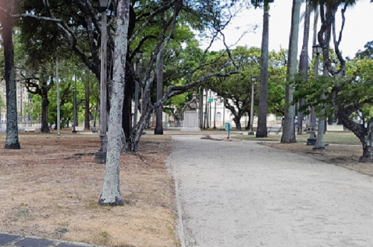 A Praça da República, que concentra monumentos como o Palácio do Campo das Princesas, o Teatro de Santa Isabel, o Palácio da Justiça não tinha um só verdinho no chão antes recoberto de grama inglesa. Estava – e ainda está – tudo seco. O verde que sobrava era das árvores adultas e já resilientes às estações mais quentes do ano, como o baobá secular e tombado, que é até atração turística da cidade.