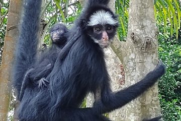 Uma graça, esse primata da foto. Trata-se de um macaco-aranha-da-testa-branca (“Ateles marginatus”), que está entre uma das maiores espécies da…