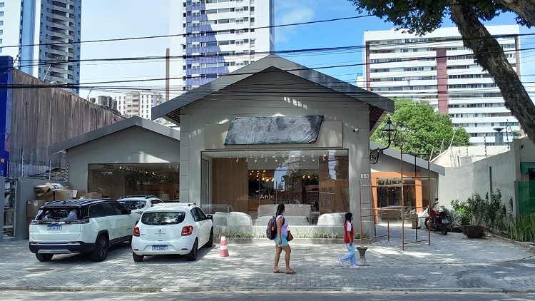 Na última vez que andei pela Rua da Hora, estava de portas fechadas e com sinais visíveis de deterioração, por conta da falta de uso. Pois vejam como está agora (na foto abaixo), para sediar um novo tipo de comércio: os saudáveis tons de terra e barro dos tijolos aparentes foram substituídos pelo cinza. Nem um pouco alegre. O amarelo, tão luminoso, também “cinzentou”. E as janelas antigas com seus postigos agora são vidraças. Uma pena.